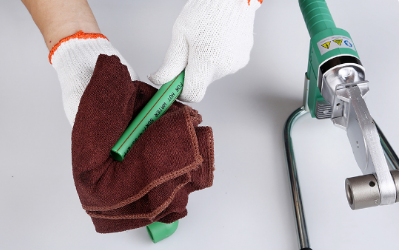 3、趕緊用毛巾擦拭PPR管材上面的污漬,確保管材無水漬。